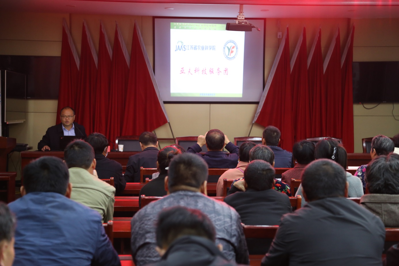 4月21日杨海峰副研究员在丰县赵庄镇政府礼堂作了“洋葱高效栽培技术”专题讲座和技术指导,赵庄、首羡等镇农技人员、种植户等160余人参加了会议。会后,参会人员观摩了吴楼村洋葱种植大户孙卫东、李常柱的洋葱生产田,此地霜霉病发病较严重,杨海峰就当前洋葱大面积的病害防治及施肥技术给予了现场技术指导。