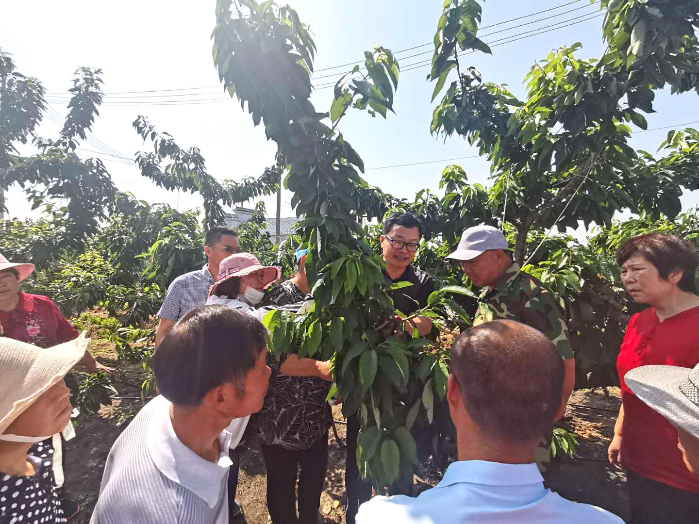 2020年6月12日,我院果林室科技人员邀请同北京农林科学院樱桃专家张开春研究员和赣榆区农业农村局成英研究员来到赣榆厉庄谢湖村,为当地居民开展樱桃栽培管理技术课程,同时深入甜樱桃种植基地,并针对厉庄甜樱桃的种植情况,在甜樱桃的品种选择、栽培方式、树形整修和果园管理等方面与当地果农进行了交流,并提出了意见与建议。本次指导受到当地果农的欢迎和好评,取得了良好的效果。