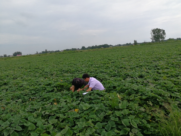 8月25日,我院蔬菜项目组来到灌南县百禄镇南房村,观察甘薯田间生长状况。目前是甘薯膨大关键时期,专家们检查甘薯地下膨大情况,并在田间进行现场指导,指导农户做好防控地上部分徒长,并对一些农户生产中遇到的问题进行了解答。