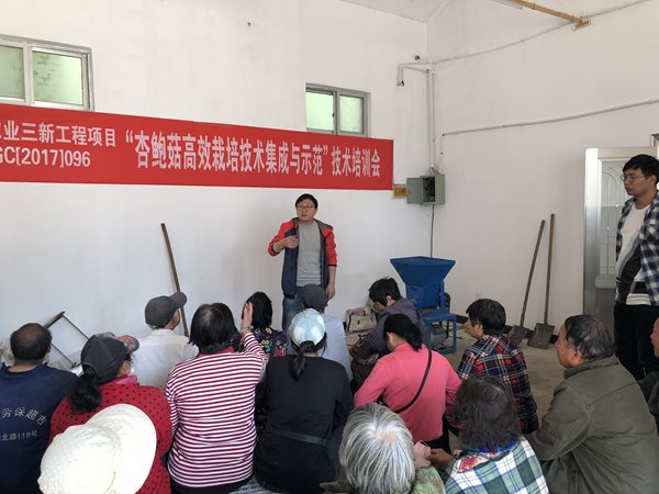 10月12日,我院“江苏省农业三新工程项目”生物技术项目组结合我市杏鲍菇生产中病虫害发生特点和问题,组织种植户在玉带河试验基地开展杏鲍菇病虫害防治技术培训,并根据食用菌栽培生产所需,为种植户发放农药等物资。同时,项目组组织基地学习观摩会,现场向参会农民讲解杏鲍菇高效栽培技术及流程,取得了良好的培训、观摩效果。