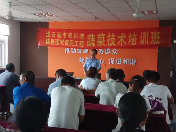 2017年7月26日,连云港市农业科学院“挂县强农富民工程”蔬菜项目组在东海县温泉镇东连湾村、三左口乡新王庄村,开展茄果类设施栽培技术培训,培训内容主要为持续高温条件设施栽培措施。