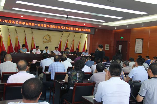 7月11日,连云港市农科院-东海县挂县强农富民工程推进会暨技术培训活动成功举办。连云港市农科院书记陈凤、东海县副县长张海斌,农科院副院长缪美华,连云港市农委人教处处长孙乃立、东海县林牧业局局长周育民等参加了会议。连云港市农科院动物中心主任柳丽进行了养猪技术讲座。