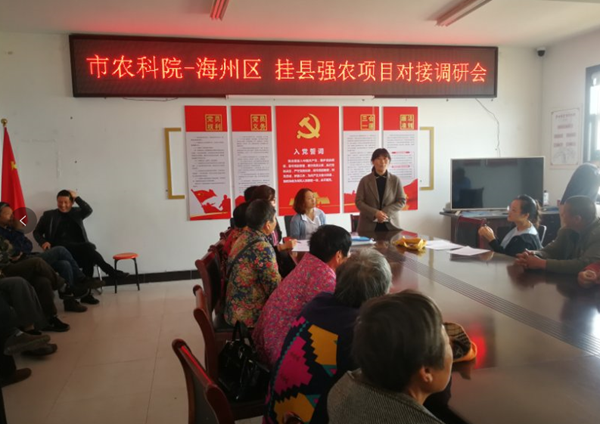 2019年5月6日,连云港市农科院科技服务团队赴海州区与农业农村局实地对接2019年挂县强农工作。双方联合组成调研组赴海州区浦南镇草舍村、锦屏镇桃花村等地,组织相关农户进行调研,了解农户家庭状况、种植品种规模、技术水平、肥料使用、经济效益及生产中存在的问题等情况,为下一步有效开展挂县强农项目工作奠定基础。