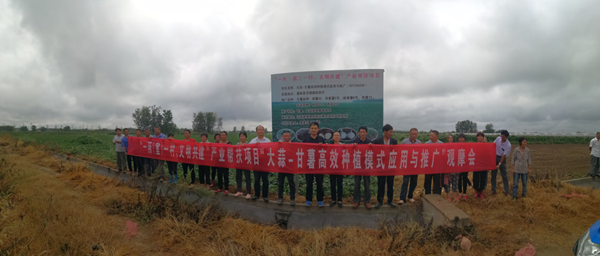 会后大家观摩了引进的徐薯32、徐紫薯5号、徐紫薯8号及商薯19的生长情况;并向参会农户发放物资。