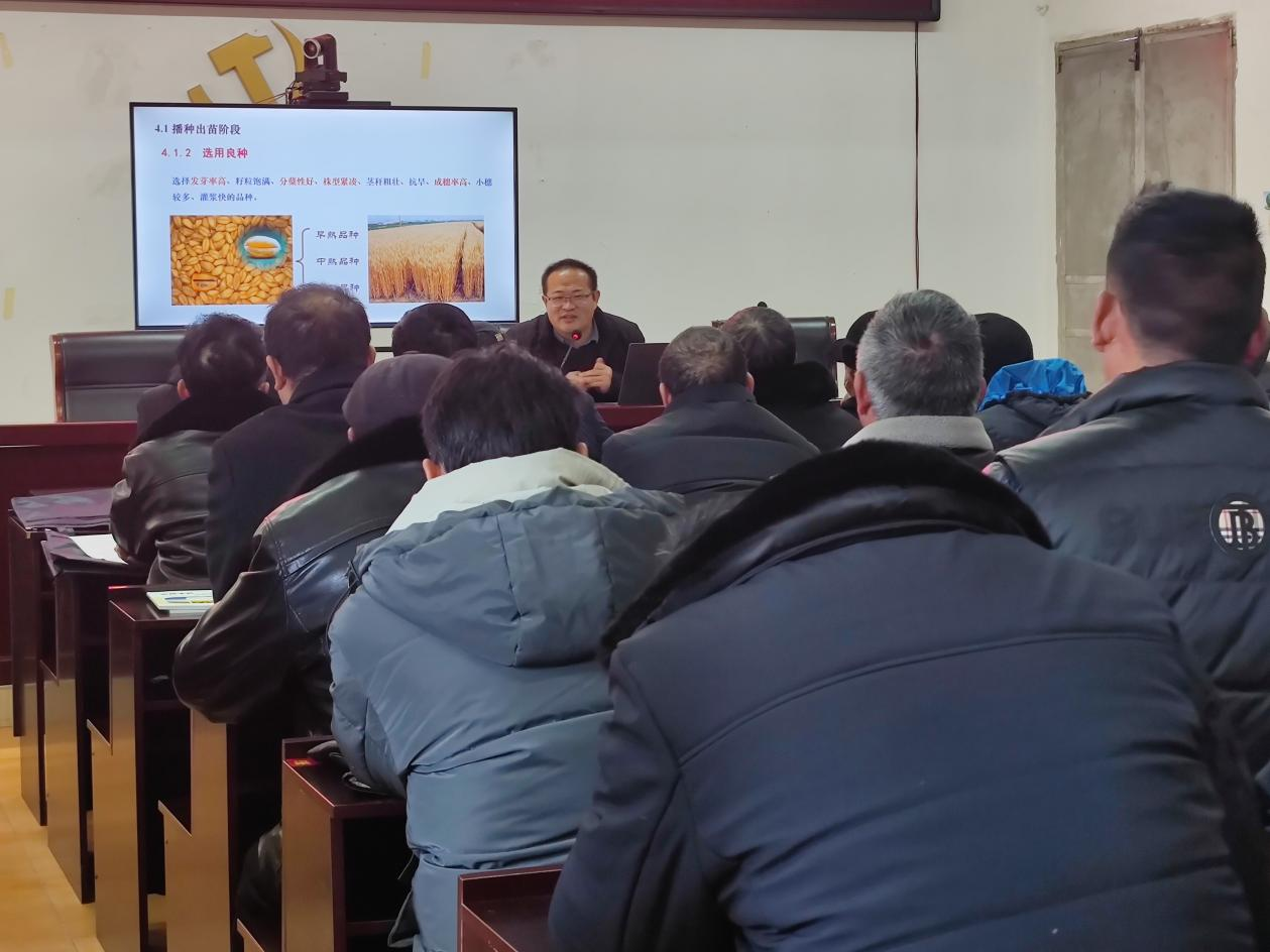 近日,我院小麦研究室先后赴灌云县圩丰镇和赣榆区塔山镇开展科技服务。小麦研究室主任樊继伟从小麦的生长发育规律、品种的选择、不同生育阶段的肥水管理及病虫草害的防控等方面做了系统的培训,并深入田间地头,针对当前生产实际,提出了春季管理建议。