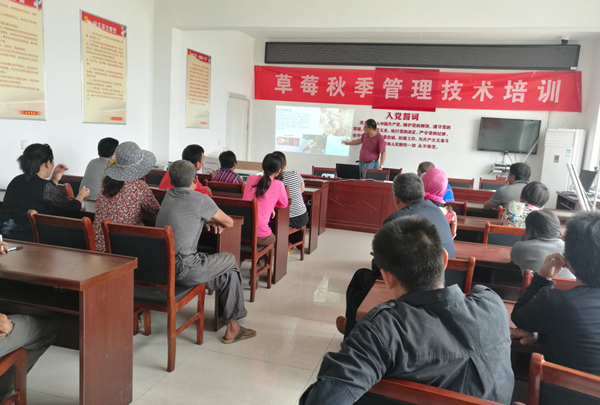 9月18日我院挂县强农项目组一行来到东海县黄川镇新沭村示范基地,为草莓种植户开展了草莓病虫害综合防控技术培训。