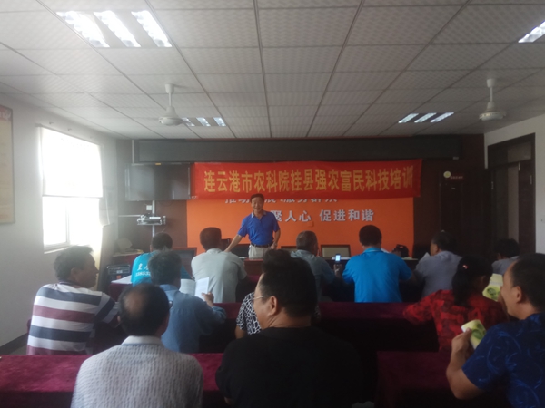 8月30日,我院“挂县强农富民工程”蔬菜项目组结合当前温室蔬菜生产特点,上午在东海县温泉镇东连湾村、下午在三左口乡新王庄村开展温室蔬菜栽培技术培训,培训内容主要为温室的高温闭棚消毒、整地施肥、温室温度控制,番茄、茄子、丝瓜等采收及定植技术等,示范户、种植户、农技人员及村干部等参加了培训,两村累计培训106人次,发放培训教材110份。同时,根据设施蔬菜生产及示范户所需,发放设施专用的微生物菌剂140袋,36户示范户为重点发放对象。