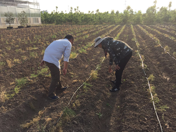 6月10日,蔬菜研究室赴云台农场梓翰绿色农庄开展芦笋栽培技术指导工作。科研人员来到田里进行现场察看,针对芦笋定植及栽后管理提出了几条注意事项:芦笋定植时,芦笋苗应将鳞芽发生的一端全部顺着一个方向进行定植;浇足定植水,缓苗后,根据田间墒情隔10~20天浇水一次,保证根系及植株生长需水;芦笋怕涝,要保证垄沟排水顺畅,严防田间积水,以免沤根死苗。