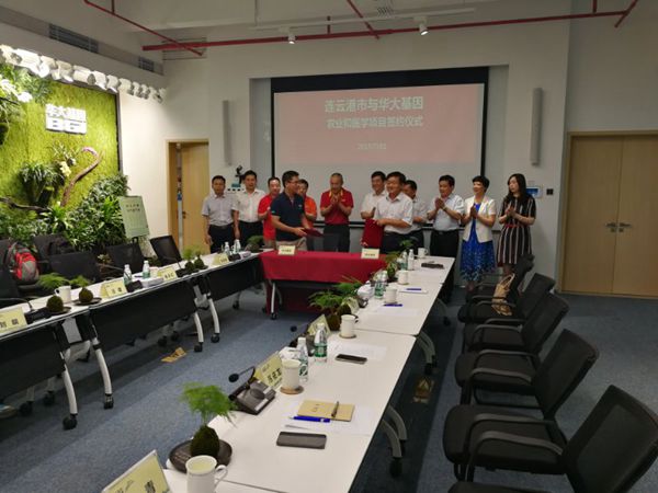 7月31日上午, 连云港市农业科学院院长徐大勇与深圳市华大农业应用研究院副院长赵山岑在深圳国家基因库会议室签订战略合作协议。双方将围绕特色农业开发推广及人才培养等方面展开全方位的合作。